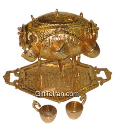 Send a beautiful old fashion design of syrup or water storage with six small cups and surprise the recipient. It is made of Brass or copper. Please select your desire material and color from the list.