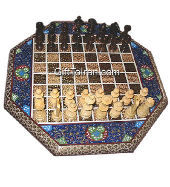 This hand made chessboard with elegant Inlay work (Khatam kari) is one of the most unique executive gifts available. This magnificent chess set will be a great addition to any home.