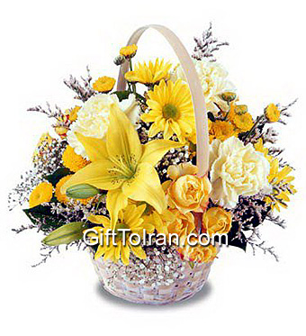 Send your love and warmest wishes along with this elegant decorated basket of fresh flowers.